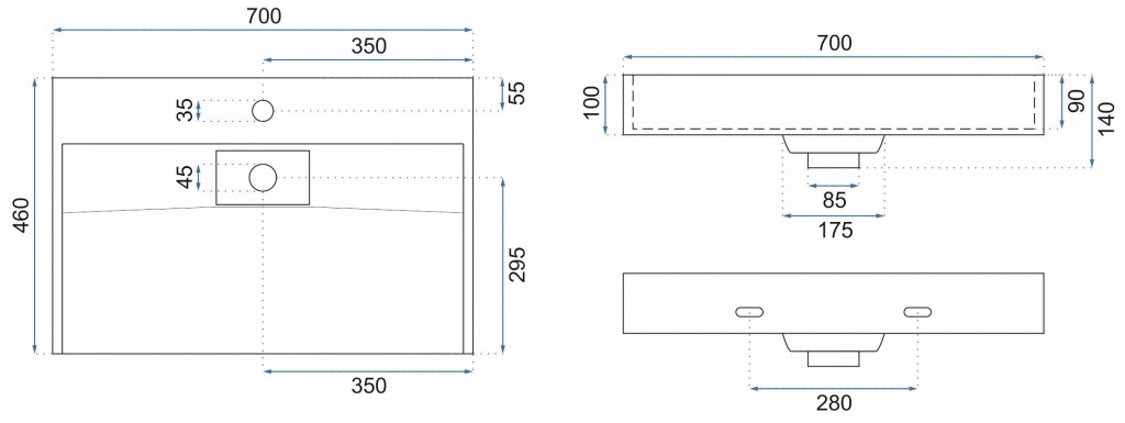 Rozmery umývadla na dosku Goya