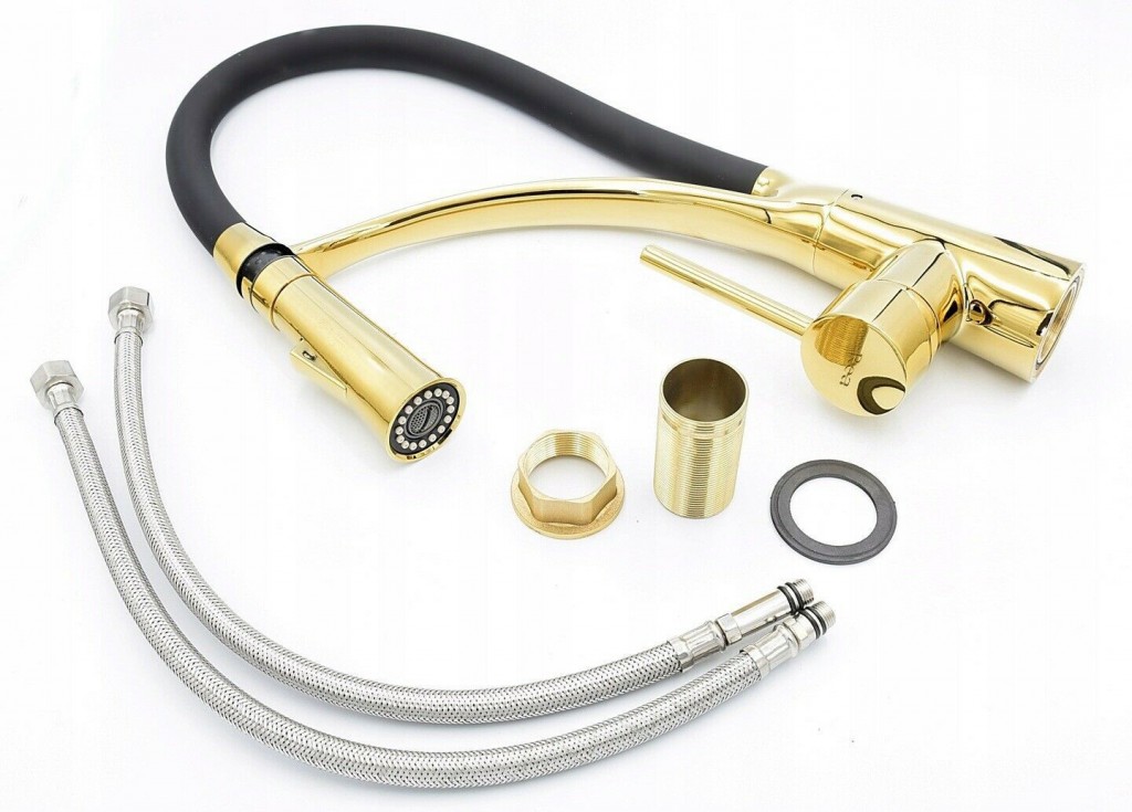 Kuchynská batéria je určená na montáž na drez alebo na dosku. V balení nájdete všetko na pripojenie : batériu, dostatočne dlhé hadičky (50 cm), skrutky a tesnenia.