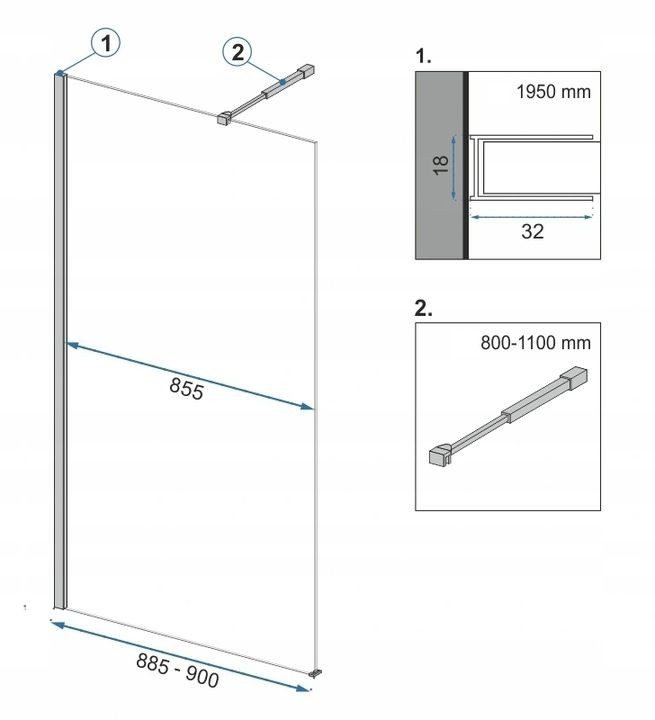 - Šírka: 90 cm (reguláciou skla a profilu získate šírku od 88,5 cm do 100 cm)