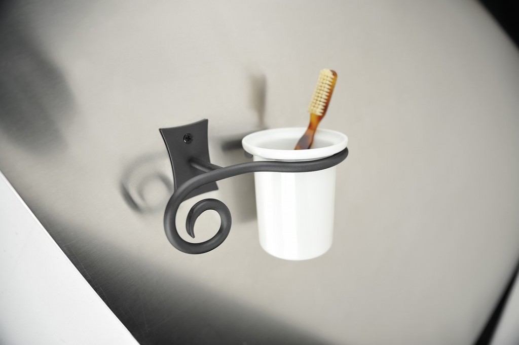 Kúpeľňové doplnky REBECCA evokujú krásu umeleckého kováčstva. Kované úchyty vkusne dopĺňajú nádobky z bielej keramiky. Nechajte sa uniesť surovou krásou zručne spracovaného kovu série REBECCA.