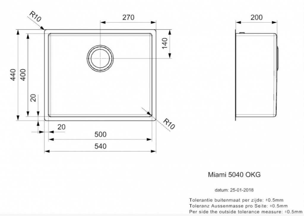 Vanička drezu Miami 500 je dostatočne hlboká (20 cm) pre pohodlné umývanie aj objemného riadu, ako sú hrnce a plechy na pečenie.