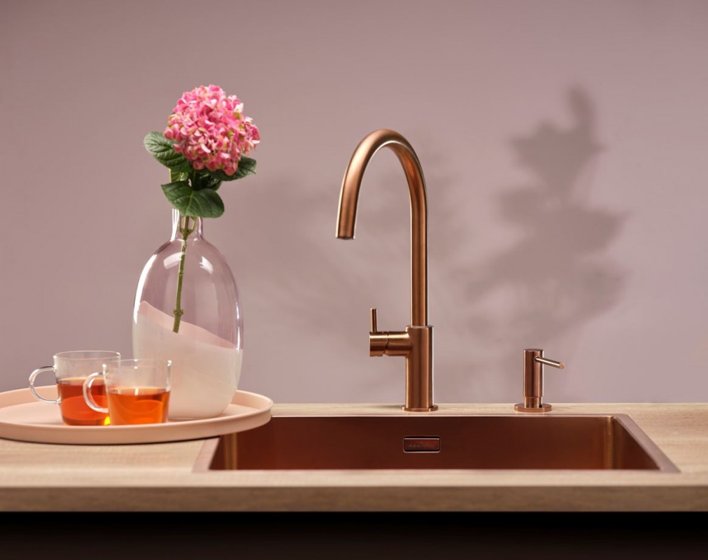 Kuchynská batéria Cano Copper (R30493) , kartáčovaný nikel-meď. Táto kuchynská batéria dopĺňa tzv. rad štýlovej mosadze, aby dokonale ladila s drezom. Ideálna kombinácia štýlu, kvality a výkonu.