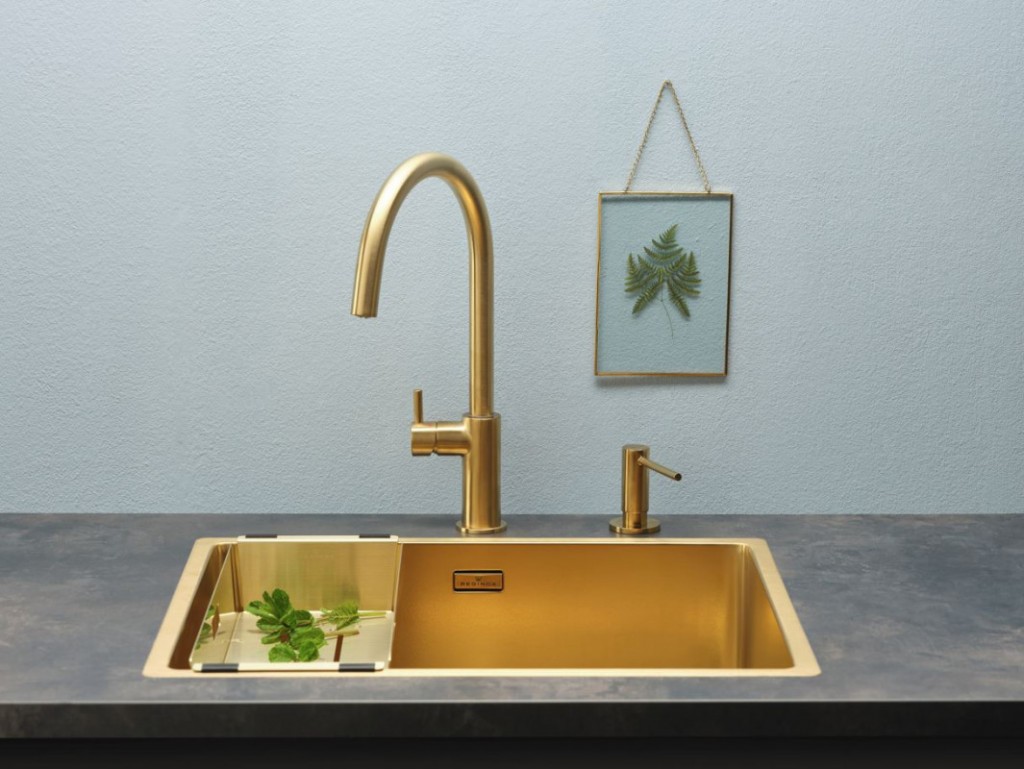 Kuchynská batéria Cano Gold (R30509) , kartáčovaný nikel- zlato. Táto kuchynská batéria dopĺňa tzv. rad štýlovej mosadze, aby dokonale ladila s drezom. Ideálna kombinácia štýlu, kvality a výkonu.