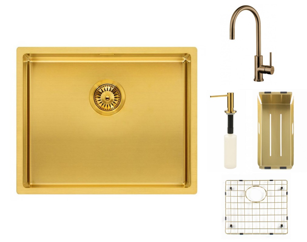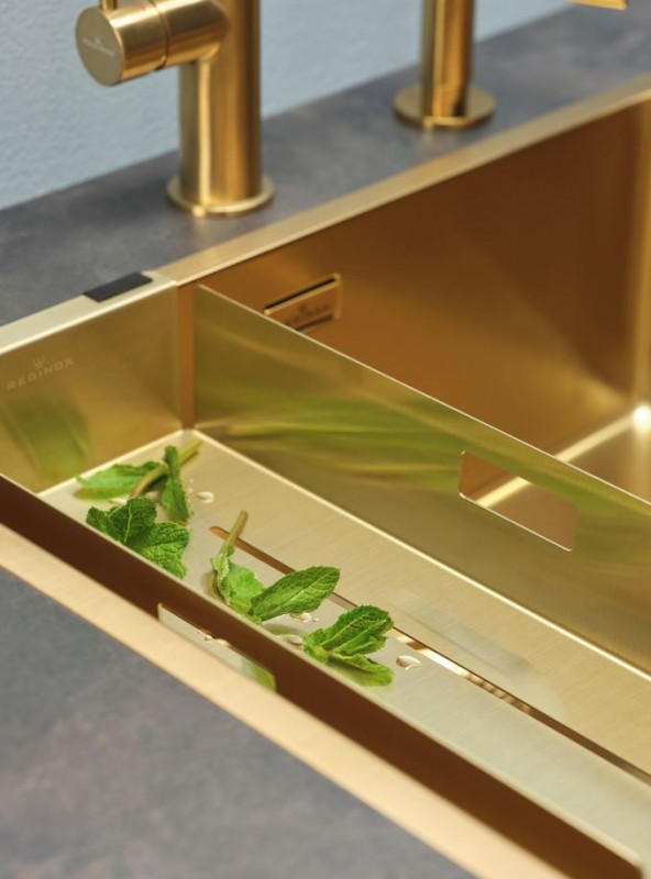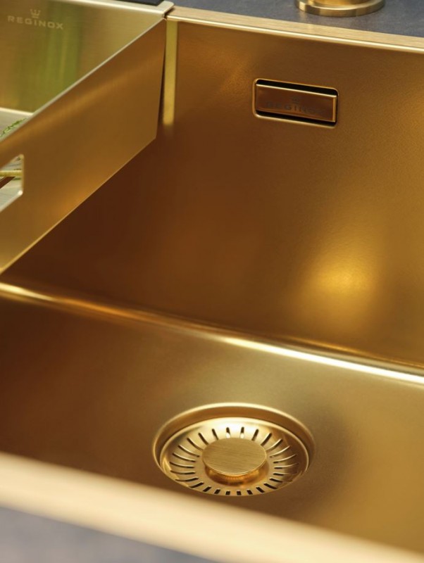 Luxusný zlatý set drezu vrátane príslušenstva vyrába líder na trhu medzi drezami prestížna firma Reginox. Spoločnosť Reginox je na trhu viac ako 39 rokov, kladie dôraz na dizajn, kvalitu aj životné prostredie. Nerezový drez Miami 500 Gold (R30745) je súčasťou dizajnového radu farebných drezov Regicolour. Set drezu v zlatej farbe sa dokonale hodí do kuchyne v klasickom, glamour, retro, rustikálnom alebo anglickom štýle. Dodá interiéru originálny charakter.