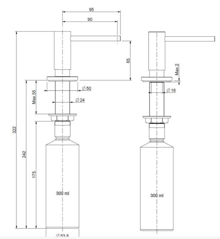 - dávkovač je určený pre: čistiace prostriedky, saponáty tekuté mydlá, sprchové gély, telovú a pleťovú kozmetiku.