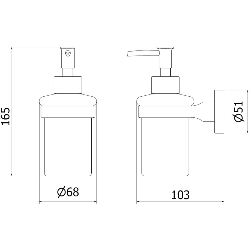 Špecifikácia produktu: Materiál: Kov + Sklo Povrchová úprava: Čierny chróm Šírka: 6,8 cm Výška: 16,5 cm Vzdialenosť od steny: 10,3 cm Objem: 180 ml
