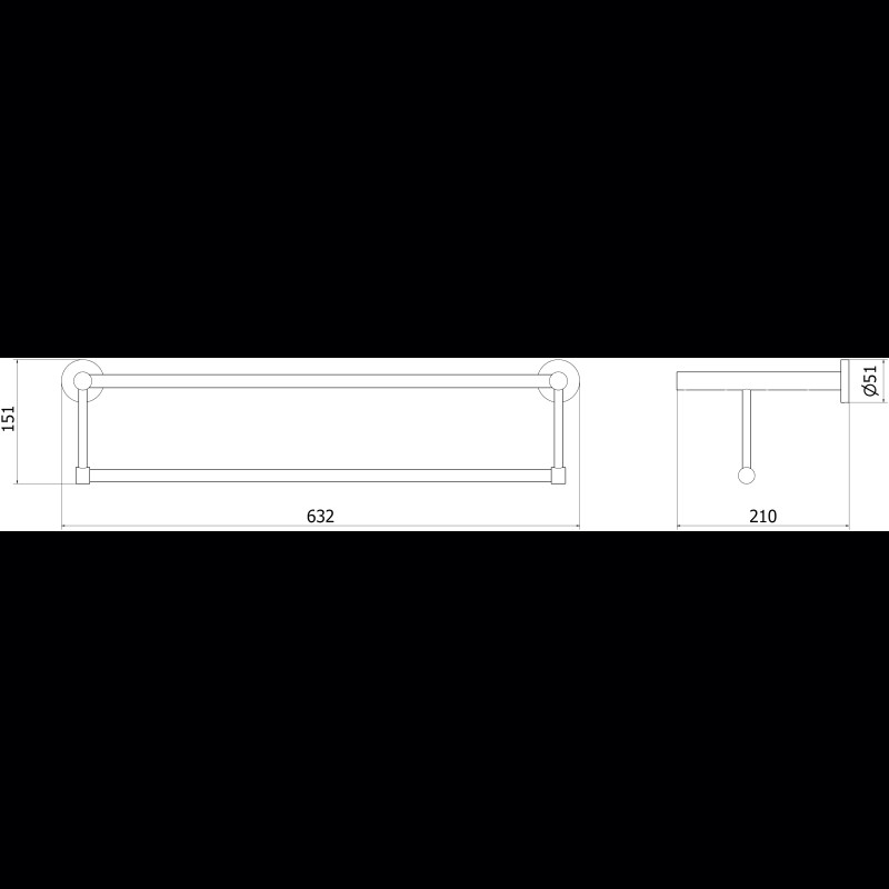 Špecifikácia produktu: Materiál: Kov Povrchová úprava: Čierny chróm Šírka: 63,2 cm Výška: 15,1 cm Vzdialenosť od steny: 21 cm
