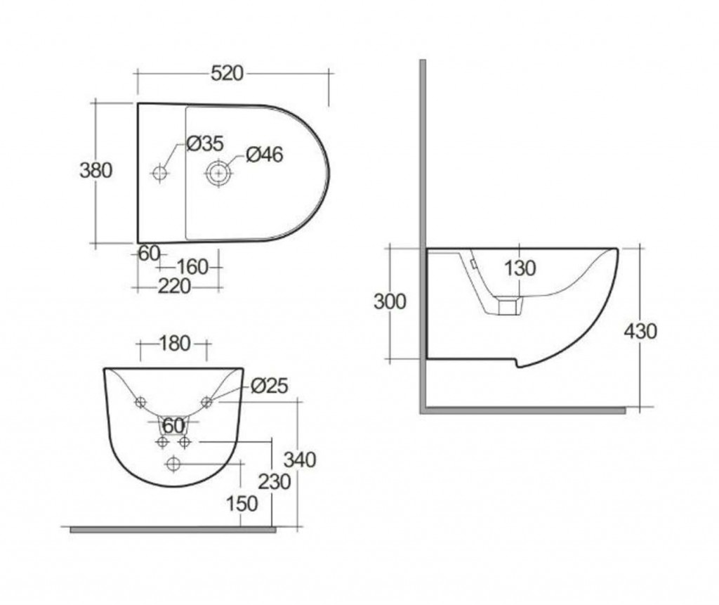 KLUDI-RESA D Závesný bidet so skrytým upevnením