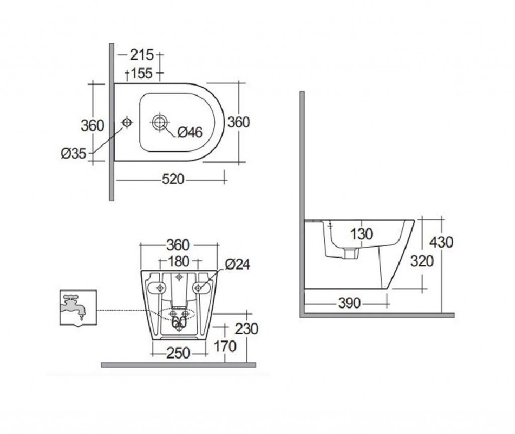 KLUDI-RESA R Závesný bidet so skrytým upevnením