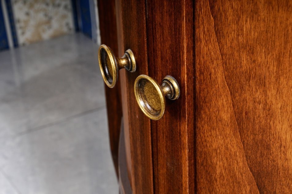 Skříňky jsou napuštěny 2 vrstvami oleje - barevným pro sjednocení barvy dřeva a bezbarvým pro zvýšenou odolnost.