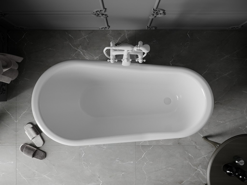 Voľne stojaca akrylátová vaňa RETRO od výrobcu MEXEN. Vaňa s maximálnym množstvom vody 170 litrov je bez prepadu a odpad má umiestnený na užšom konci vane. Súčasťou vane je odtoková zátka a sifón.