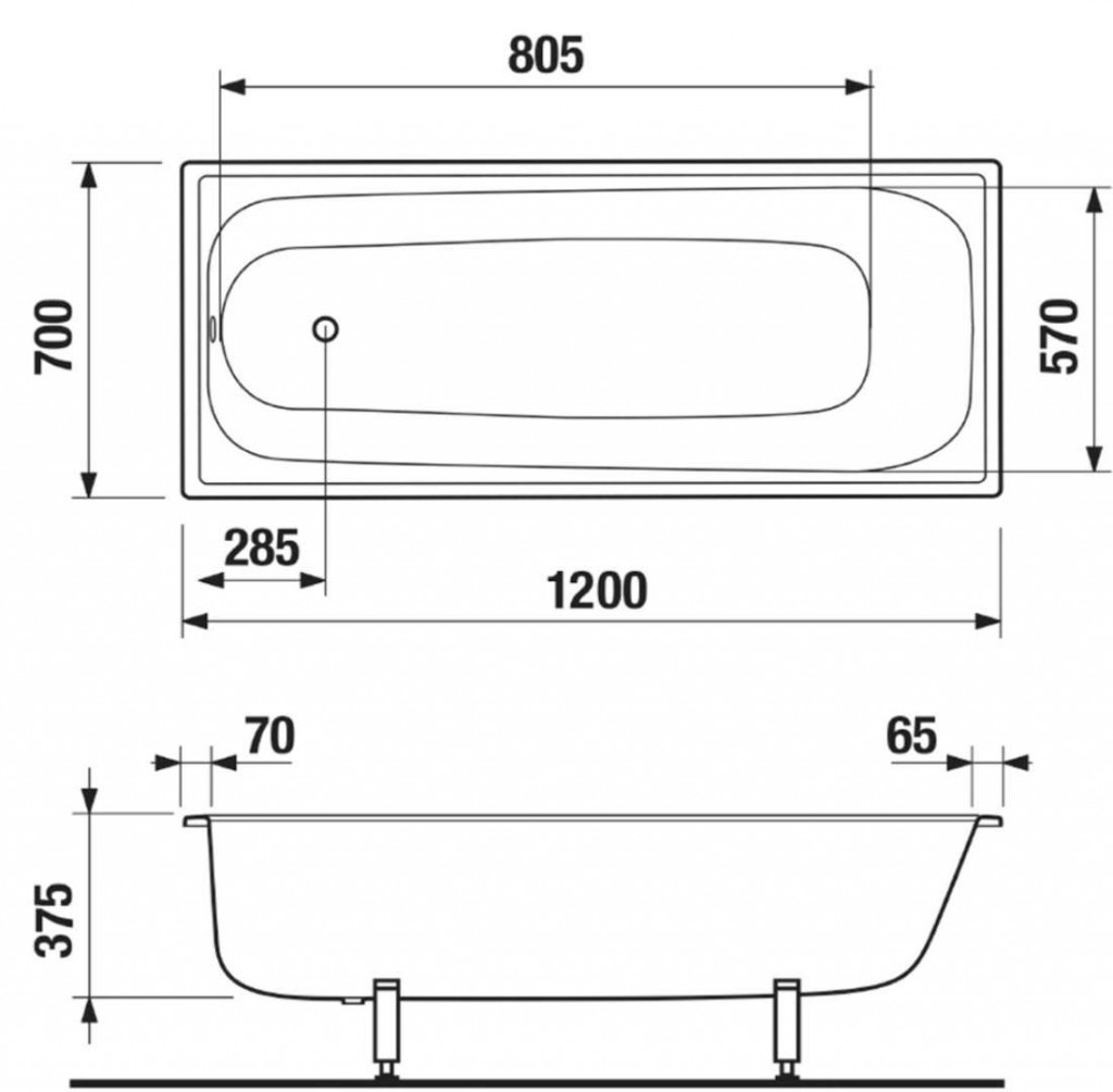 Nohy k vani a odtokovú súpravu je nutné objednať zvlášť.