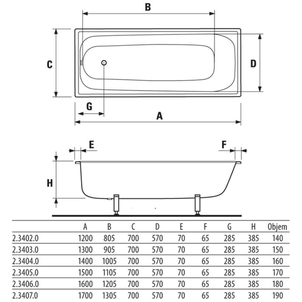 - vaňa zo smaltovanej ocele 2,1 mm