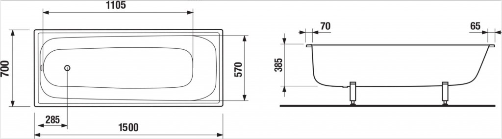Nohy k vani a odtokovú súpravu je nutné objednať zvlášť.