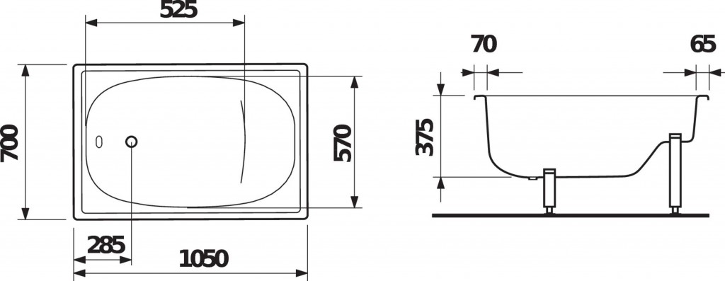 - dĺžka 1050 mm, šírka 700 mm, výška 375 mm
