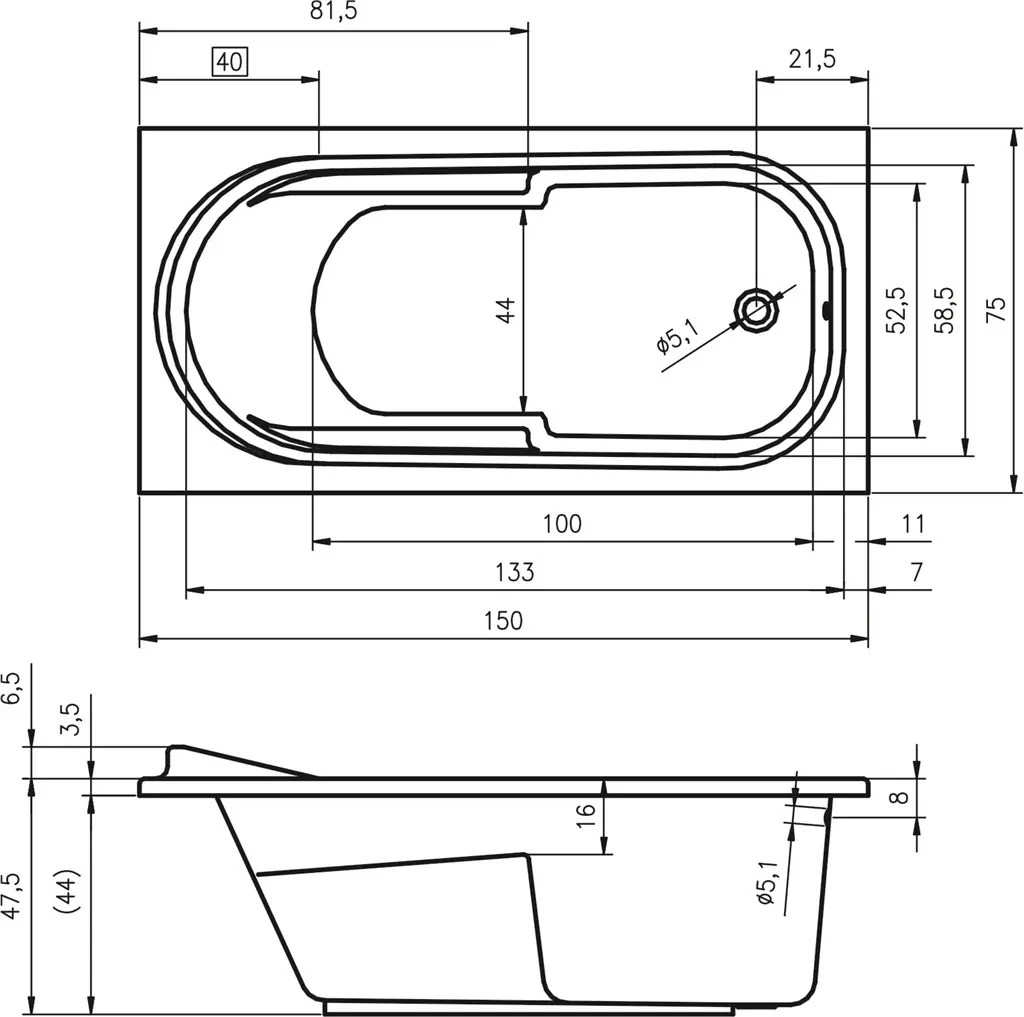 veľkosť vane 150x75 cm