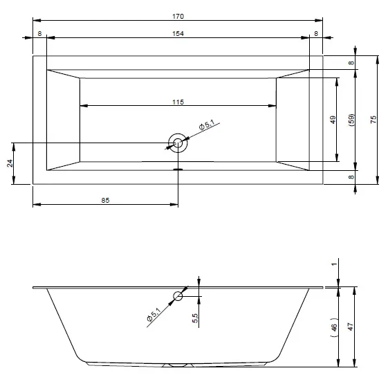veľkosť vane 170x75 cm