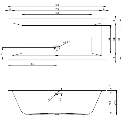 RIHO LUGO vaňa 190x80 bez nôh BIELA BT0400500000000