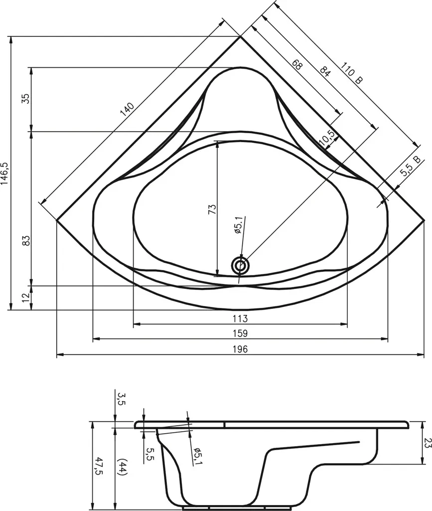 RIHO NEO rohová vaňa 140x140 bez nôh BC3400500000000