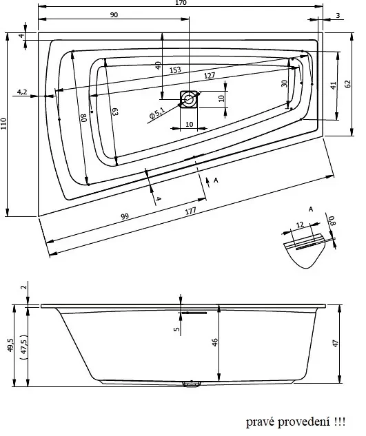 RIHO STILL SMART R vaňa 170x110 bez nôh BIELA Pravá + napúšťanie Riho Fall - chróm BR03C0500000000