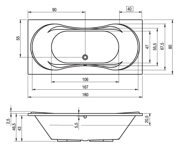 RIHO SUPREME vaňa 180x80 bez nôh BIELA BA5500500000000