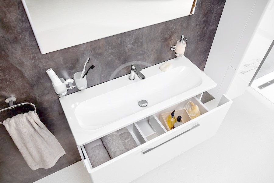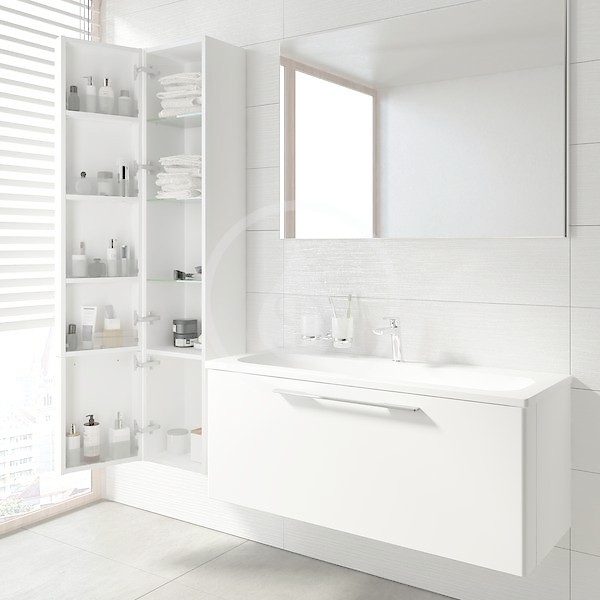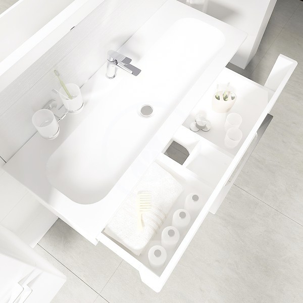 Skříňka SD 1000 Ring je určena pod umyvadlo Ring 1000. Je vybavena vysokou zásuvkou a velkým úložným prostorem o výšce 400 mm. Dodáváno ve smontovaném stavu. Skříňka je montována na zeď.
