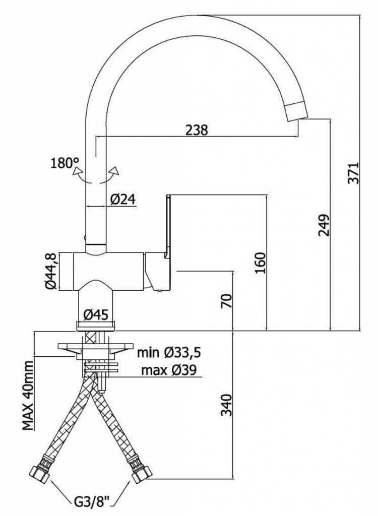 Kuchynská drezová stojanková páková batéria s otočným ramienkom