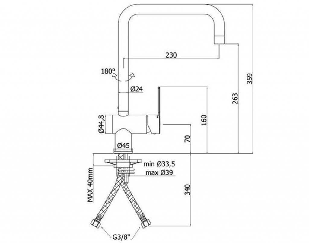 - dĺžka výtoku 230 mm, komfortná zóna 263 mm