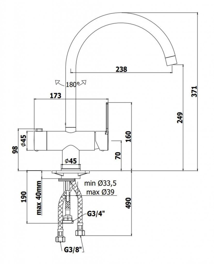 - dĺžka výtoku 238 mm