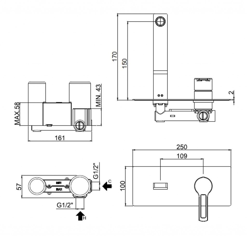 Umývadlová páková batéria pod omietku s telesom