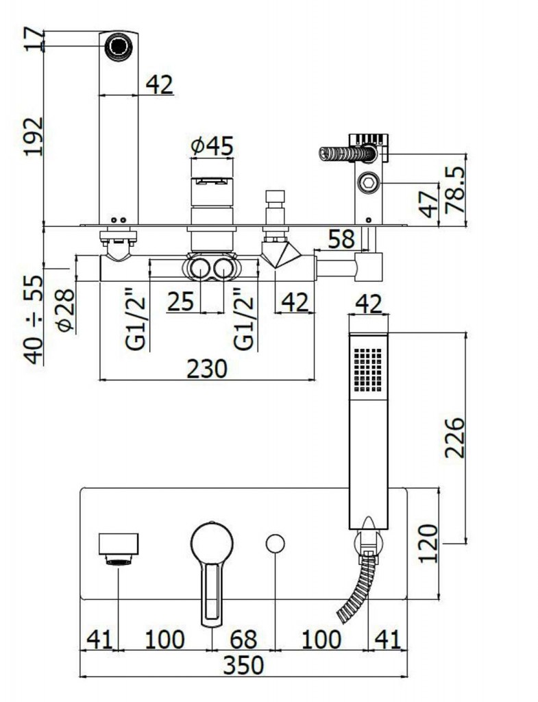 Vaňová páková batéria pod omietku s telesom vrátane sprchového setu