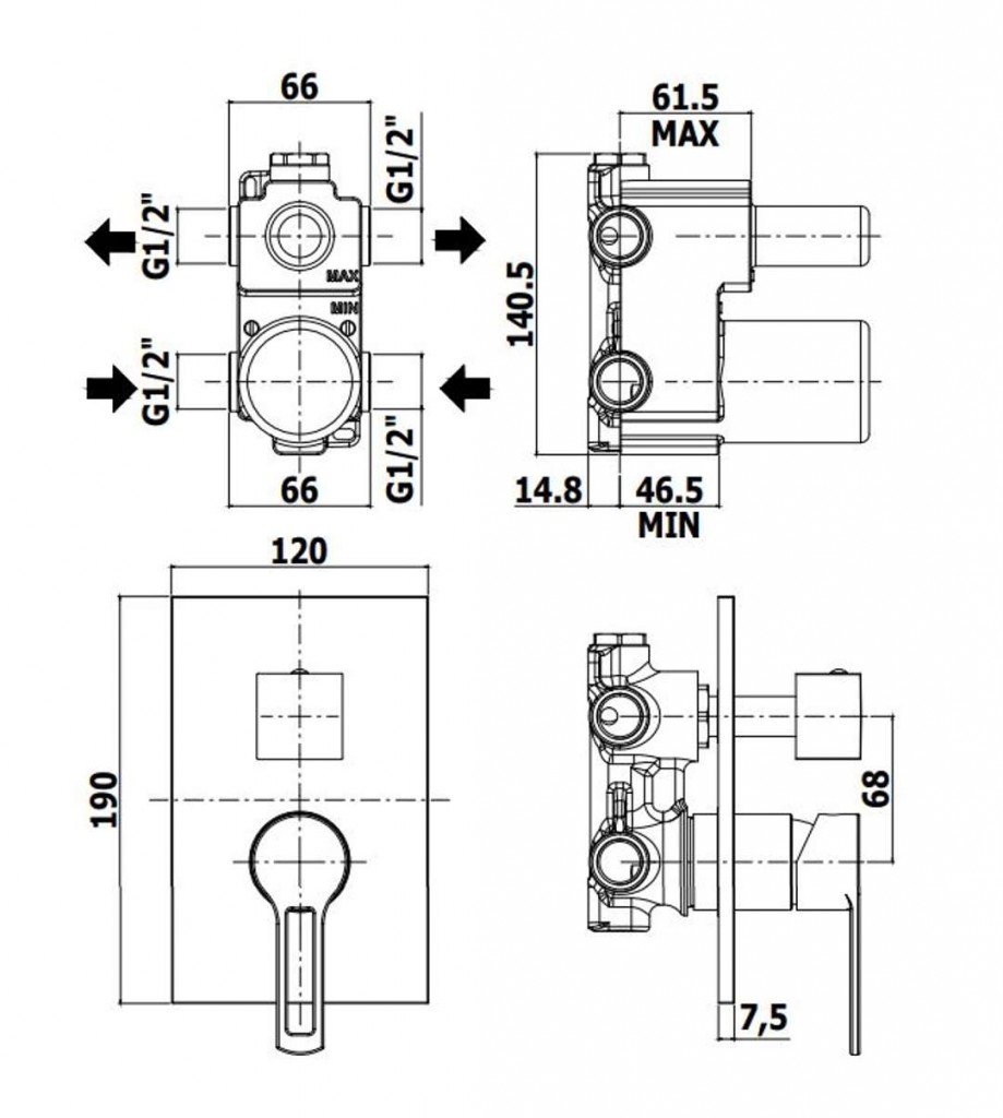 - všetky pripojenia vody: G 1/2