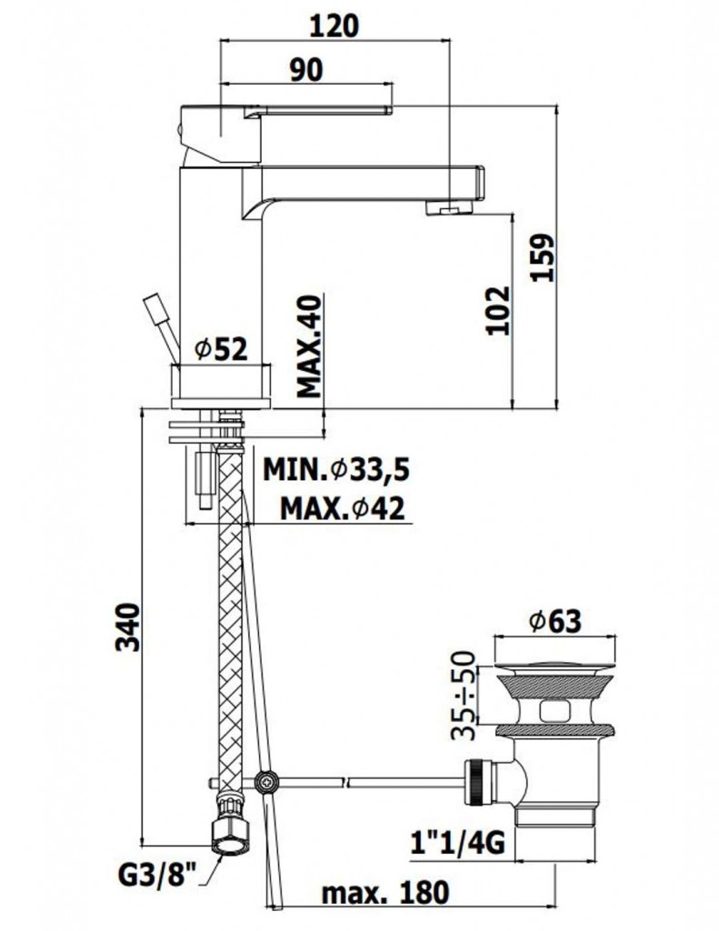 - dĺžka výtoku: 120 mm