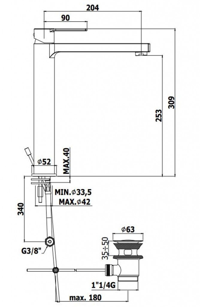 - dĺžka výtoku: 204 mm