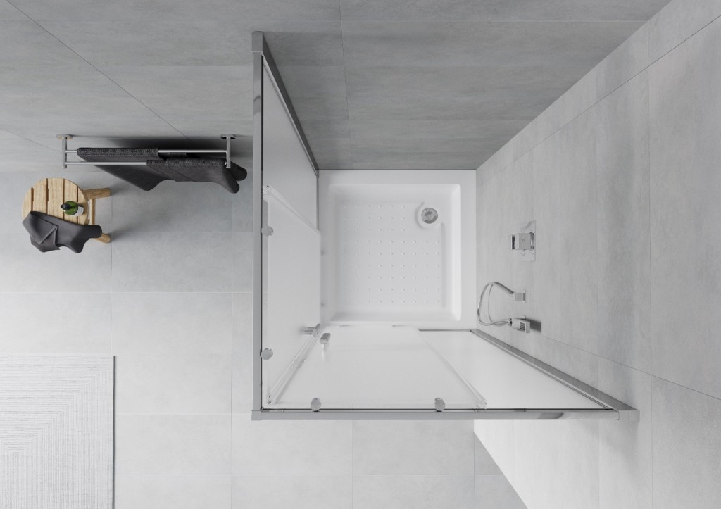 Štvorcový sprchovací kút z kolekcie Mexen RIO . Funkčné posuvné dvere so spoľahlivými valčekmi, ktoré zaručujú plynulé a tiché posúvanie. Obliečka na skle uľahčuje ich čistenie, takže si môžete dlhšie užívať dokonale priehľadné a lesklé sklo. Tvrdené a bezpečné sklo o sile a povrchové prvky dverí sú vyrobené z nerezového materiálu pokrytého povrchovou úpravou. Montáž je možná na podlahu alebo so sprchovou vaničkou.