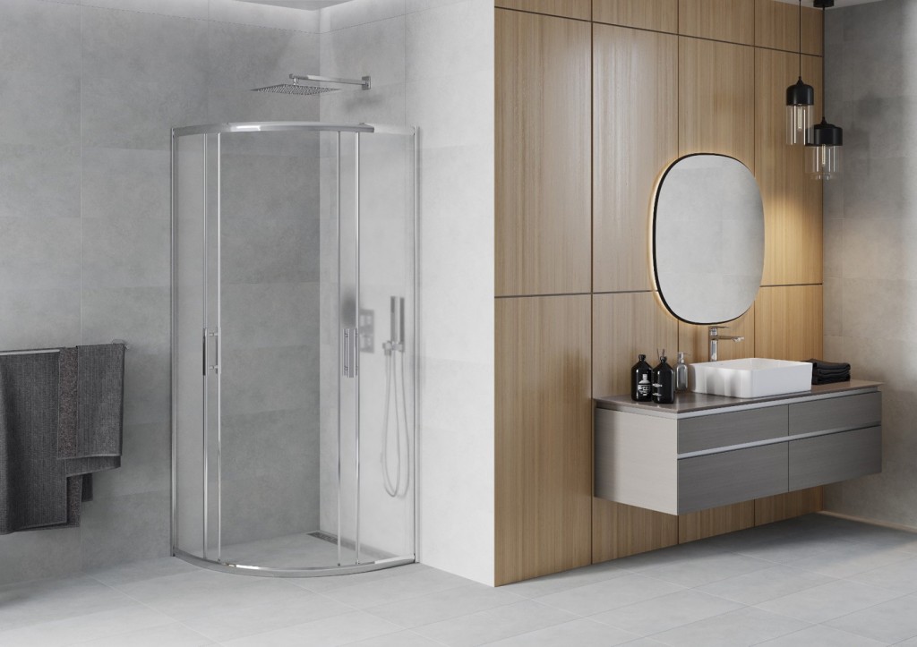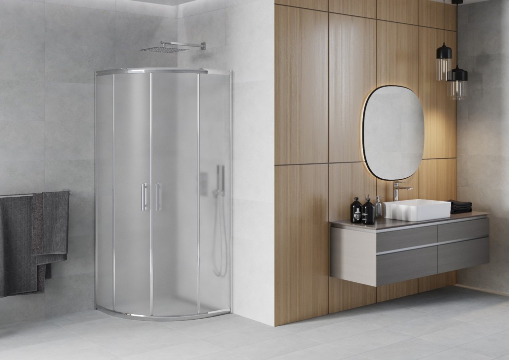 Sprchový štvrťkruhový sprchovací kút môžete umiestniť rovno na podlahu so sprchovacím kanálikom alebo na vaničku.