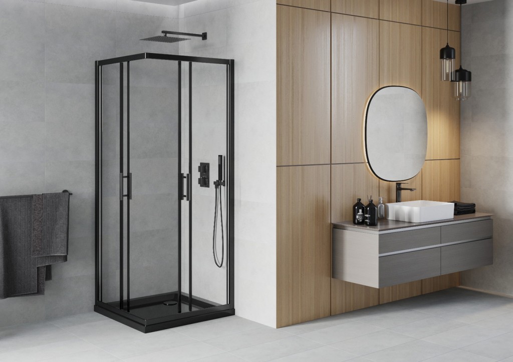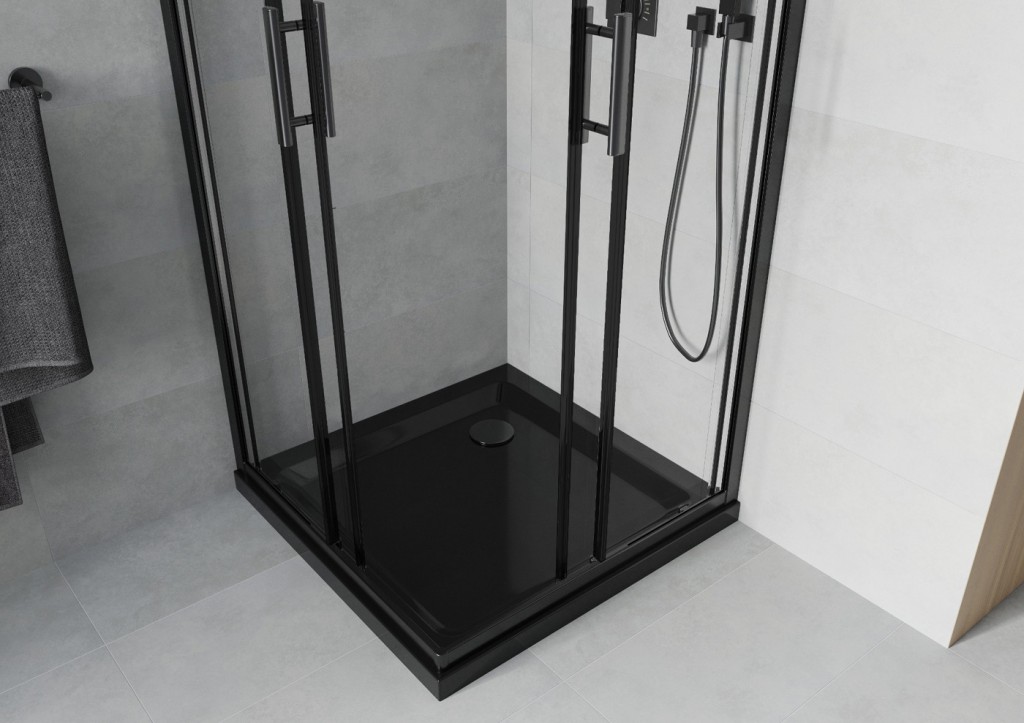 Štvorcový sprchovací kút z kolekcie Mexen RIO . Funkčné posuvné dvere so spoľahlivými valčekmi, ktoré zaručujú plynulé a tiché posúvanie. Obliečka na skle uľahčuje ich čistenie, takže si môžete dlhšie užívať dokonale priehľadné a lesklé sklo. Tvrdené a bezpečné sklo o sile a povrchové prvky dverí sú vyrobené z nerezového materiálu pokrytého povrchovou úpravou. Montáž je možná na podlahu alebo so sprchovou vaničkou.