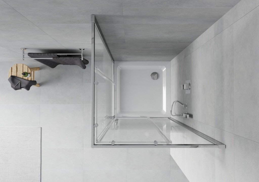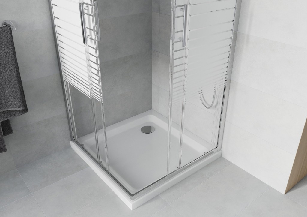 Štvorcový sprchovací kút z kolekcie Mexen RIO . Funkčné posuvné dvere so spoľahlivými valčekmi, ktoré zaručujú plynulé a tiché posúvanie. Obliečka na skle uľahčuje ich čistenie, takže si môžete dlhšie užívať dokonale priehľadné a lesklé sklo. Tvrdené a bezpečné sklo o sile a povrchové prvky dverí sú vyrobené z nerezového materiálu pokrytého povrchovou úpravou. Montáž je možná na podlahu alebo so sprchovou vaničkou.