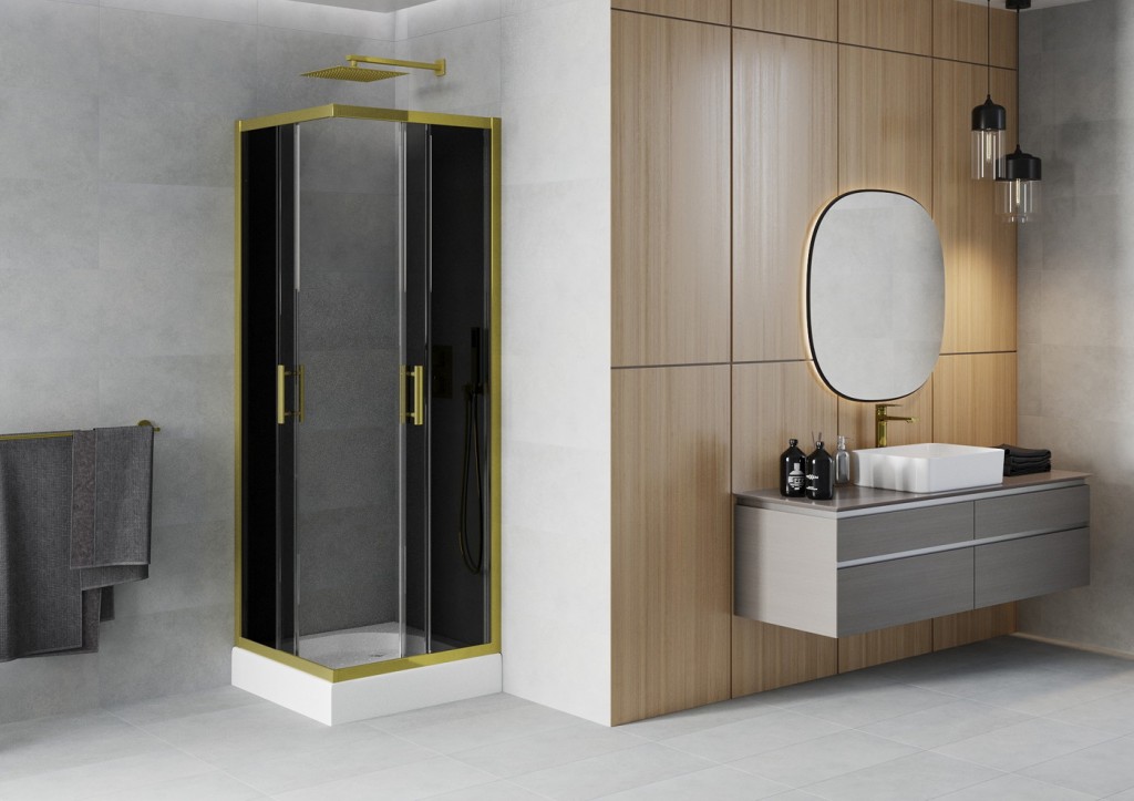 Štvorcový sprchovací kút z kolekcie Mexen RIO . Funkčné posuvné dvere so spoľahlivými valčekmi, ktoré zaručujú plynulé a tiché posúvanie. Obliečka na skle uľahčuje ich čistenie, takže si môžete dlhšie užívať dokonale priehľadné a lesklé sklo. Tvrdené a bezpečné sklo o sile a povrchové prvky dverí sú vyrobené z nerezového materiálu pokrytého povrchovou úpravou. Montáž je možná na podlahu alebo so sprchovou vaničkou.