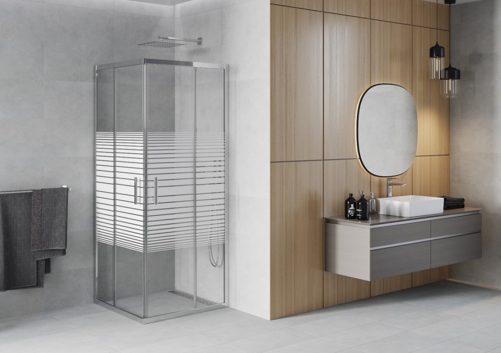 Sprchové kúty RIO sú dostupné vo variantoch s transparentným sklom, grafit, mat a stripe.