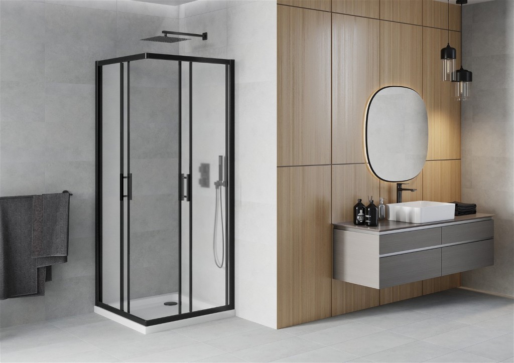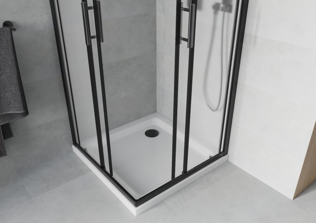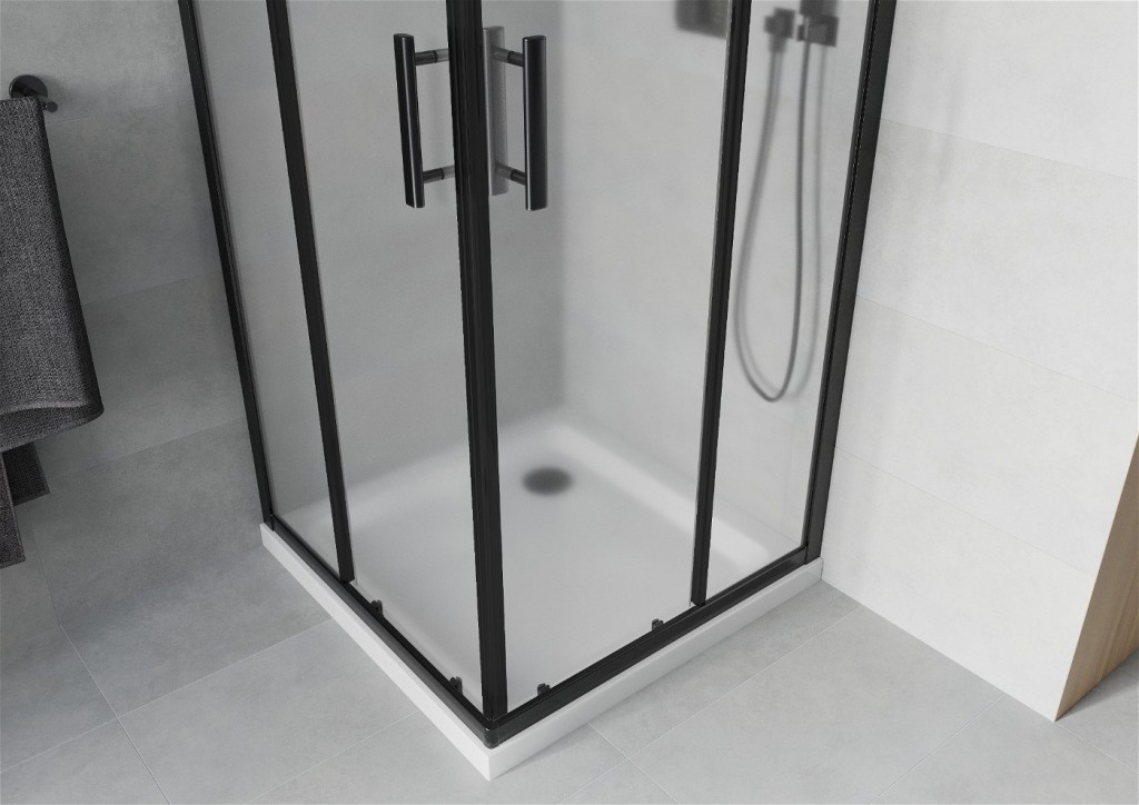 Štvorcový sprchovací kút z kolekcie Mexen RIO . Funkčné posuvné dvere so spoľahlivými valčekmi, ktoré zaručujú plynulé a tiché posúvanie. Obliečka na skle uľahčuje ich čistenie, takže si môžete dlhšie užívať dokonale priehľadné a lesklé sklo. Tvrdené a bezpečné sklo o sile a povrchové prvky dverí sú vyrobené z nerezového materiálu pokrytého povrchovou úpravou. Montáž je možná na podlahu alebo so sprchovou vaničkou.