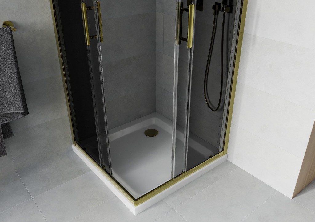 Štvorcový sprchovací kút z kolekcie Mexen RIO . Funkčné posuvné dvere so spoľahlivými valčekmi, ktoré zaručujú plynulé a tiché posúvanie. Obliečka na skle uľahčuje ich čistenie, takže si môžete dlhšie užívať dokonale priehľadné a lesklé sklo. Tvrdené a bezpečné sklo o sile a povrchové prvky dverí sú vyrobené z nerezového materiálu pokrytého povrchovou úpravou. Montáž je možná na podlahu alebo so sprchovou vaničkou.