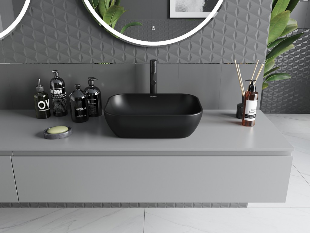 Keramické umývadlo na dosku RITA od výrobcu MEXEN doplní akúkoľvek kúpeľňu a dodá jej neuveriteľný šmrnc modernosti. Jeho štíhle hrany vytvárajú perfektný minimalistický dizajn . Môžete ho namontovať na dosku alebo na kúpeľňovú skrinku a zároveň tak ušetriť drahocenný priestor.