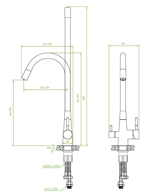 Batérie sú dostupné v elegantných farbách: kartáčovaná oceľ, čierna, grafitová a kartáčovaná zlatá . Moderné povrchové úpravy nielen ladia s rôznymi štýlmi drezov, ale zároveň sú odolné a ľahko sa udržujú.