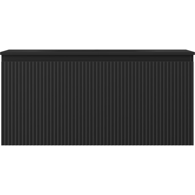 Špecifikácia produktu: Rozmery skrinky: Šírka: 100 cm Hĺbka: 46 cm Výška: 47 cm Farba korpusu: Matná čierna Materiál korpusu: Lakovaná doska Farba čela: Matná čierna Materiál čela: Lakovaná MDF doska Štruktúra čela: Drážkovaná Počet zásuviek: 1 Priestor žiarenia Rozmery umývadla: Šírka: 101 cm Hĺbka: 46,5 cm Výška: 16,5 cm Farba umývadla: Matná čierna Materiál umývadla: Konglomerát Otvor pre prepad: Áno Otvor pre batériu: Áno Zmontovaný výrobok