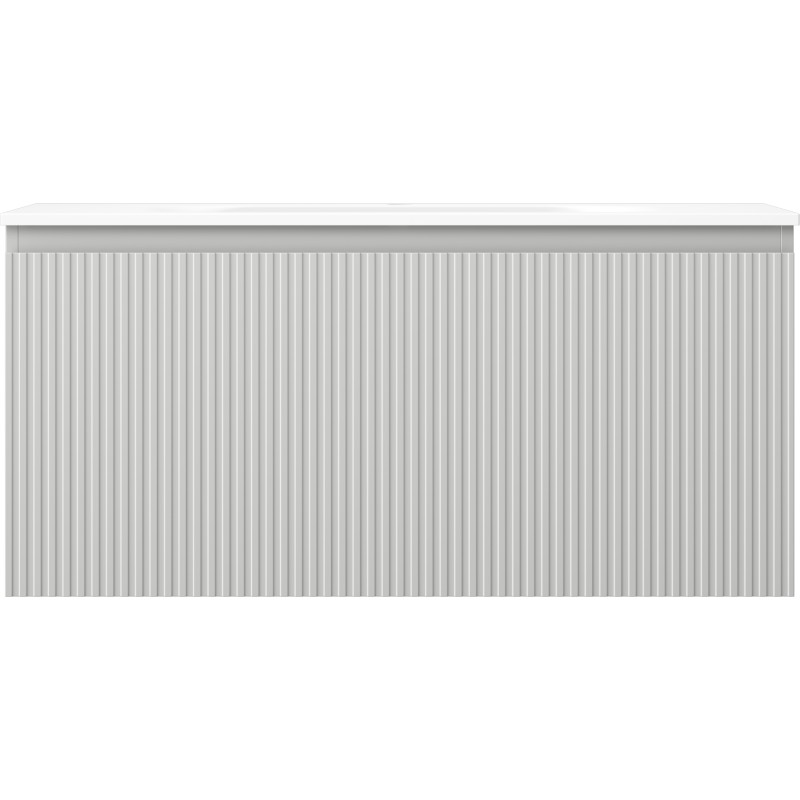 Špecifikácia produktu: Rozmery skrinky: Šírka: 100 cm Hĺbka: 46 cm Výška: 47 cm Farba korpusu: Matne šedá Materiál korpusu: Lakovaná doska Farba čela: Matne šedá Materiál čela: Lakovaná MDF doska Štruktúra čela: Drážkovaná Počet zásuviek: 1 voči UV žiareniu Rozmery umývadla: Šírka: 101 cm Hĺbka: 46,5 cm Výška: 16,5 cm Farba umývadla: Matne biela Materiál umývadla: Konglomerát Otvor pre prepad: Áno Otvor pre batériu: Áno Zmontovaný výrobok