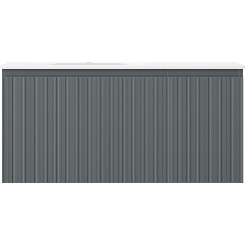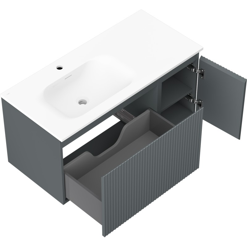 Špecifikácia produktu: Rozmery skrinky: Šírka: 100 cm Hĺbka: 46 cm Výška: 47 cm Sada obsahuje: Zásuvková skrinka pod umývadlo: Šírka: 70 cm Hĺbka: 46 cm Výška: 47 cm Farba korpusu: Matný grafit Materiál korpus čela: Lakovaná MDF doska Konštrukcia čela: Drážkovaná Počet zásuviek: 1 Priestranná zásuvka s funkciou tlmenia dovierania Povrch odolný voči UV žiareniu Skrinka pod umývadlo s dvierkami: Šírka: 30 cm Výška: 47 cm Hĺbka: 46 cm Farba korusta čela: Matný grafit Materiál čela: Lakovaná MDF doska Konštrukcia čela: Drážkovaná Počet dvierok: 1 1 polica Panty s funkciou tlmenia dovierania Univerzálna montáž dvierok (ľavé/pravé) Povrch odolný voči UV žiareniu Umývadlo: Šírka: 101 cm Hĺbka: 101 cm umývadlá: Matná biela Materiál umývadla: Konglomerát Otvor pre prepad: Áno Otvor pre batériu: Áno Zmontovaný výrobok