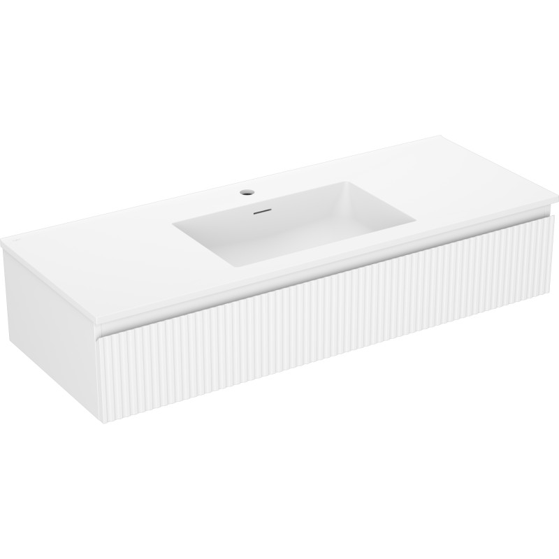 Špecifikácia produktu: Rozmery skrinky: Šírka: 120 cm Hĺbka: 46 cm Výška: 23,5 cm Farba korpusu: Matná biela Materiál korpusu: Lakovaná doska Farba čela: Matná biela Materiál čela: Lakovaná MDF doska Štruktúra čela: Drážkovaná Počet zásuviek Povrch odolný voči UV žiareniu Rozmery umývadla: Šírka: 121 cm Hĺbka: 46,5 cm Výška: 16,5 cm Farba umývadla: Matná biela Materiál umývadla: Konglomerát Otvor na prepad: Áno Otvor na batériu: Áno Zmontovaný výrobok