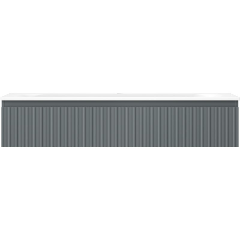 Špecifikácia produktu: Rozmery skrinky: Šírka: 120 cm Hĺbka: 46 cm Výška: 23,5 cm Farba korpusu: Matný grafit Materiál korpusu: Lakovaná doska Farba čela: Matný grafit Materiál čela: Lakovaná MDF doska Štruktúra čela: Drážkovaná Počet zásuviek Povrch odolný voči UV žiareniu Rozmery umývadla: Šírka: 121 cm Hĺbka: 46,5 cm Výška: 16,5 cm Farba umývadla: Matná biela Materiál umývadla: Konglomerát Otvor na prepad: Áno Otvor na batériu: Áno Zmontovaný výrobok