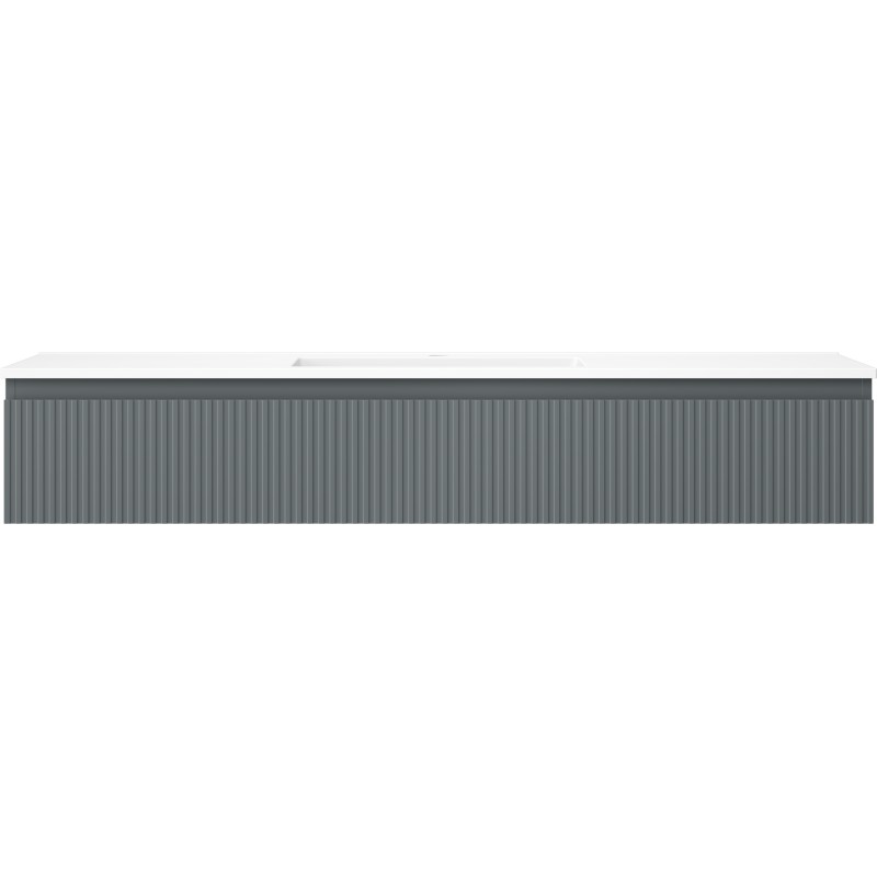 Špecifikácia produktu: Rozmery skrinky: Šírka: 140 cm Hĺbka: 46 cm Výška: 23,5 cm Farba korpusu: Matný grafit Materiál korpusu: Lakovaná doska Farba čela: Matný grafit Materiál čela: Lakovaná MDF doska Štruktúra čela: Drážkovaná Počet zásuviek Povrch odolný voči UV žiareniu Rozmery umývadla: Šírka: 141 cm Hĺbka: 46,5 cm Výška: 16,5 cm Farba umývadla: Matná biela Materiál umývadla: Konglomerát Otvor na prepad: Áno Otvor na batériu: Áno Zmontovaný výrobok